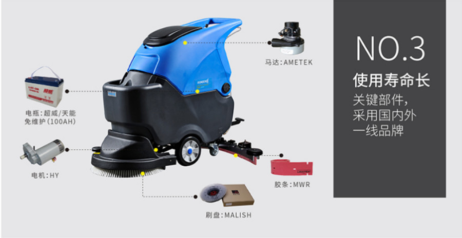 容恩手推式洗地機(R50B),全自動洗地機洗擦、吸干一次性完成,讓地面清潔如新,大大減少清潔勞累和作業時間;(R50B)手推式洗地機可靠耐用,價格實惠,操作簡單,無需培訓。特別適合500m2-2000m2場所使用。