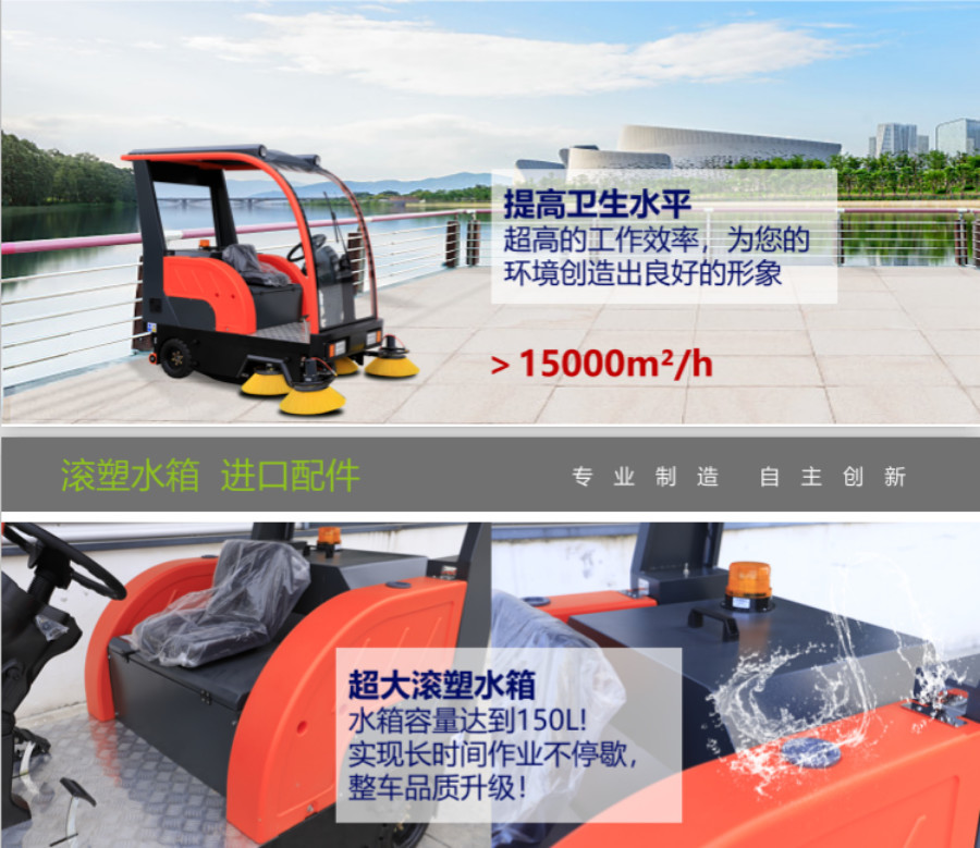 JR-1880掃地機每小時清掃15000平方米,相當于11-14名清潔工的工作效率,而且清掃效果更干凈。